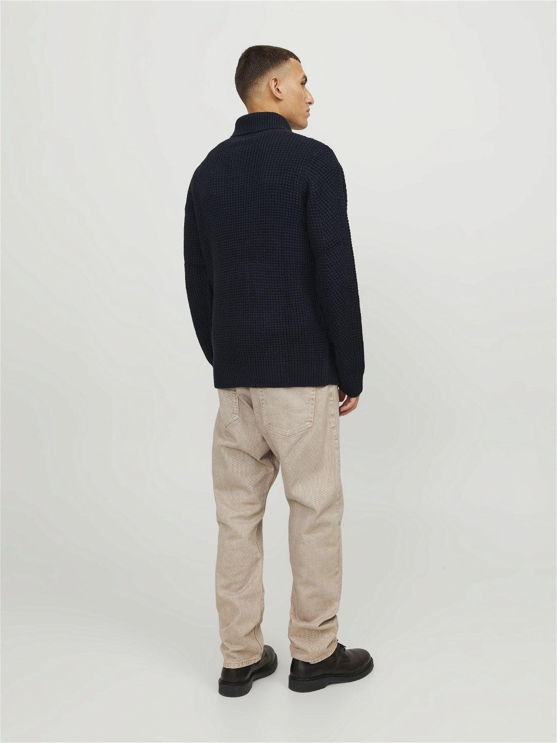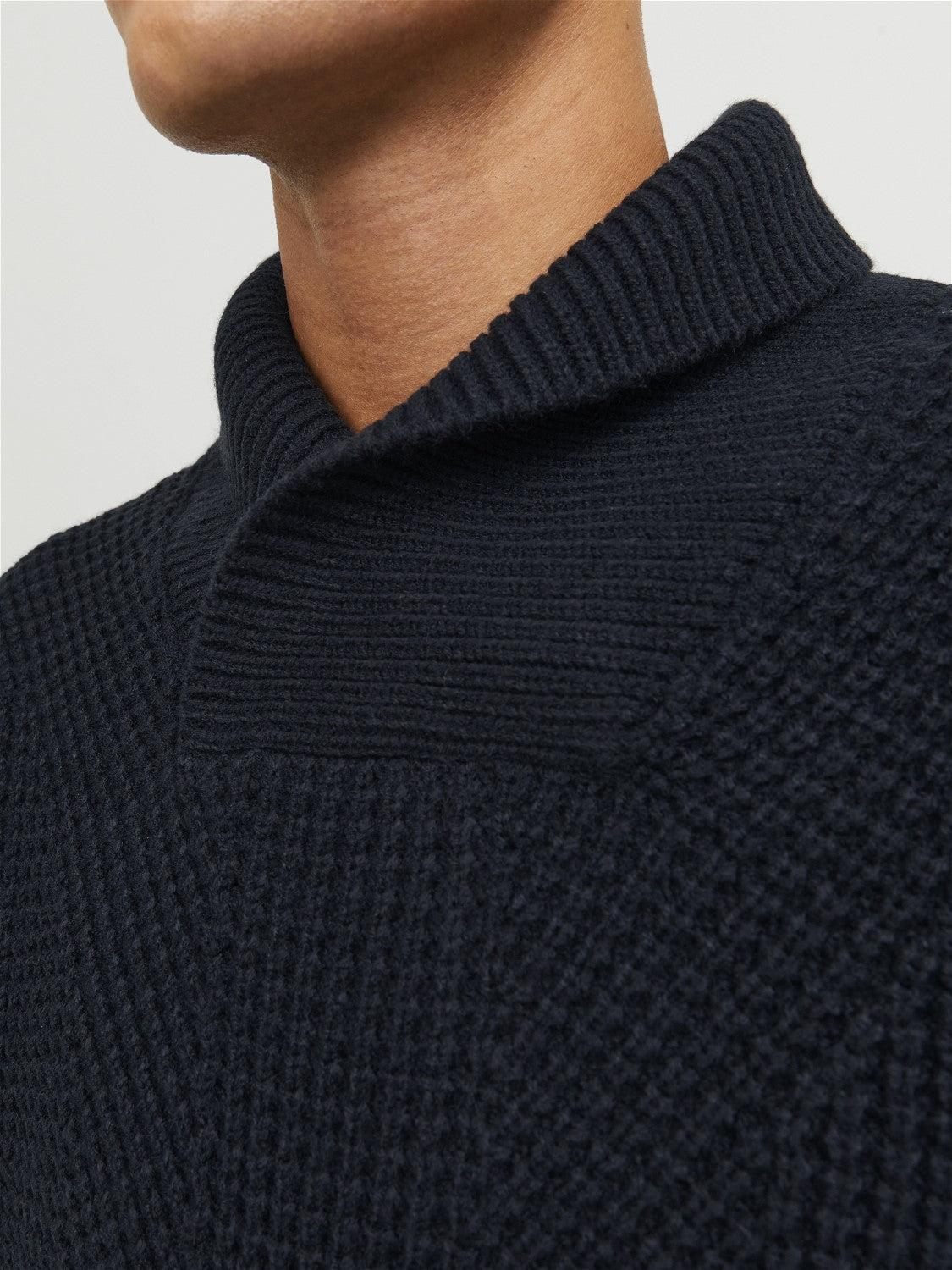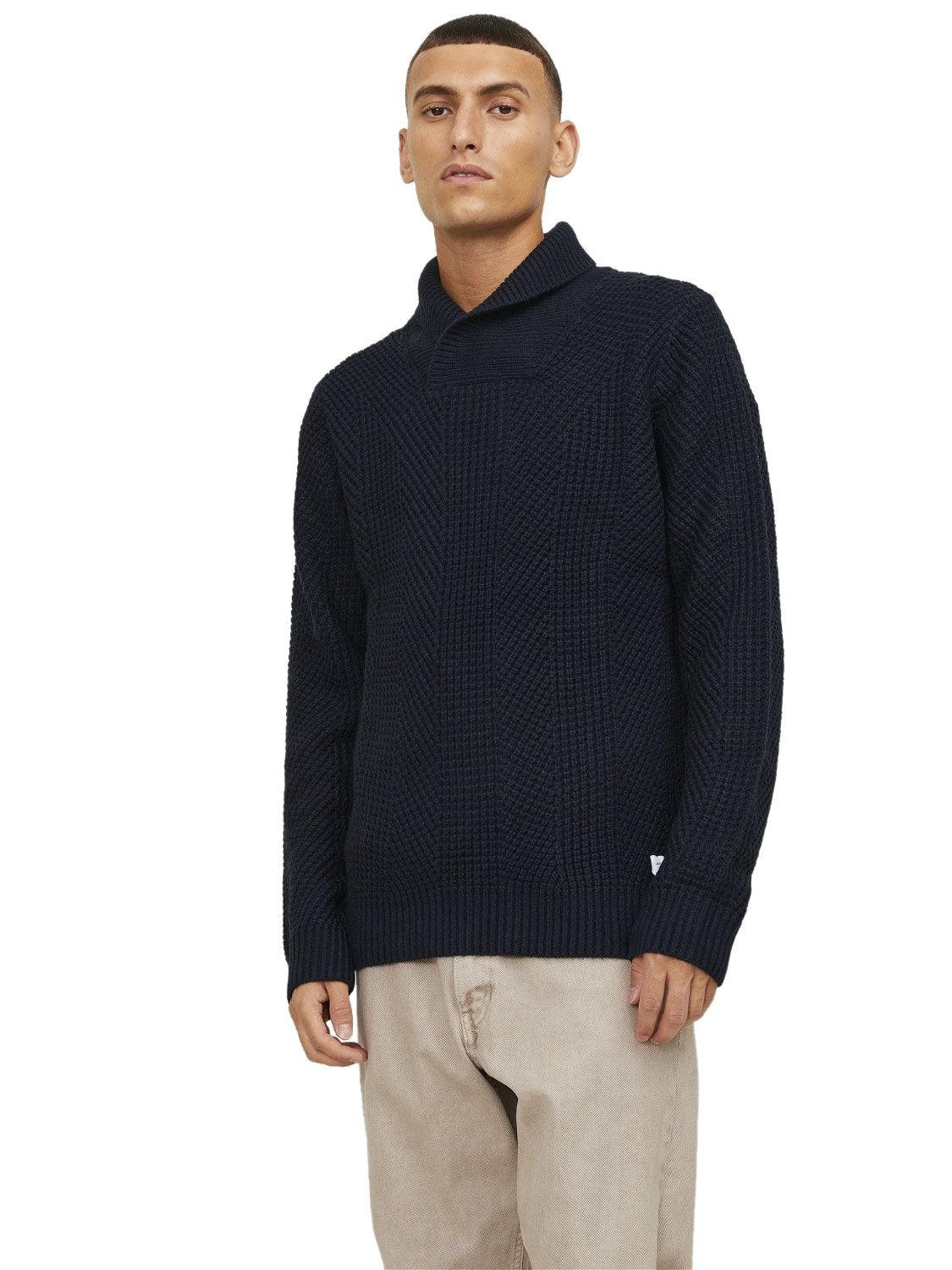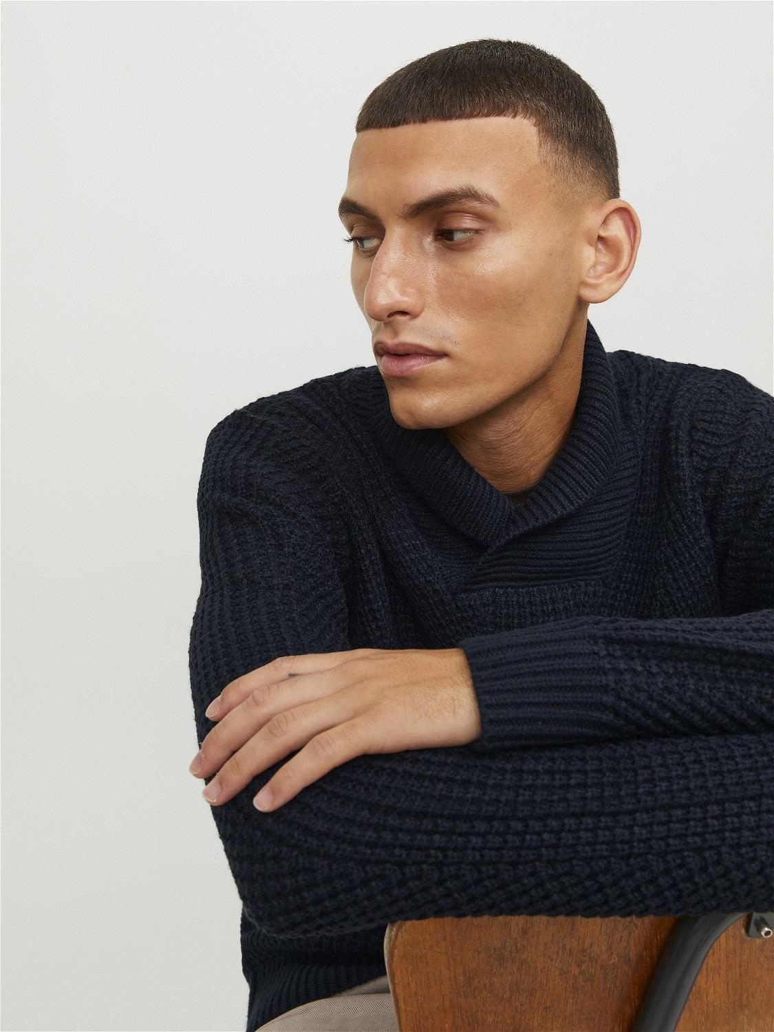 Pulover tricotat cu guler șal „JJSTANDFORD” NEGRU