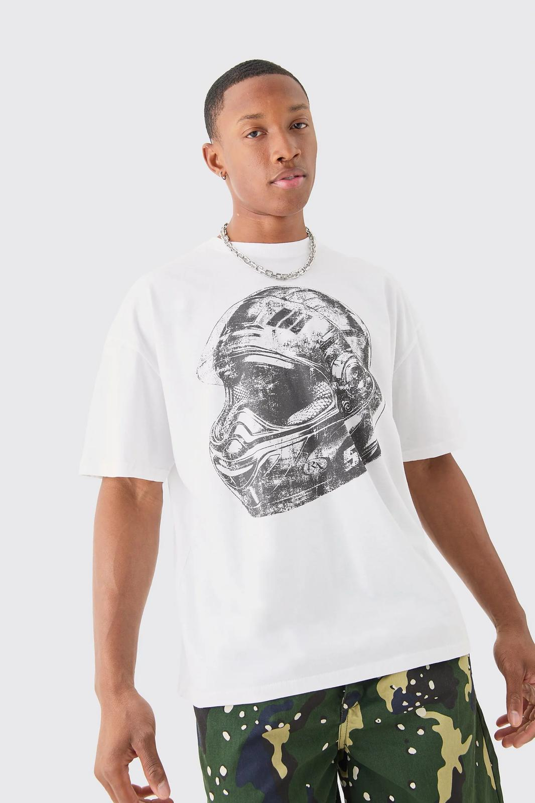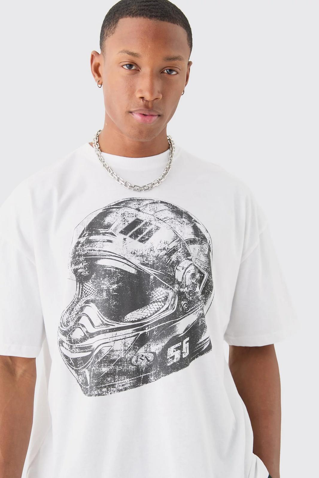TRICOU SUPRADIMENSIONAT CU ILUSTRAȚII IMPRIMATE CU CASCĂ DE MOTO