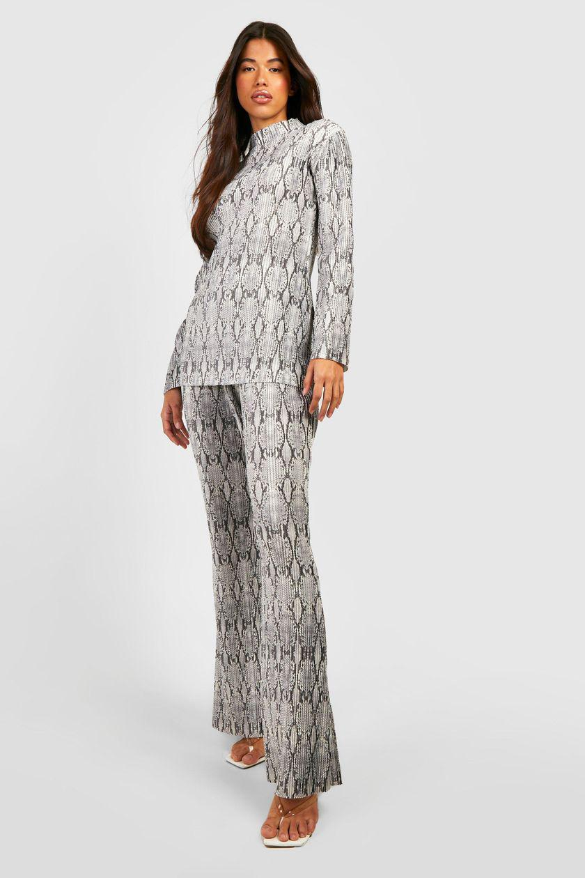 Bluza supradimensionat Plisse cu imprimeu cu șarpe cu gât înalt