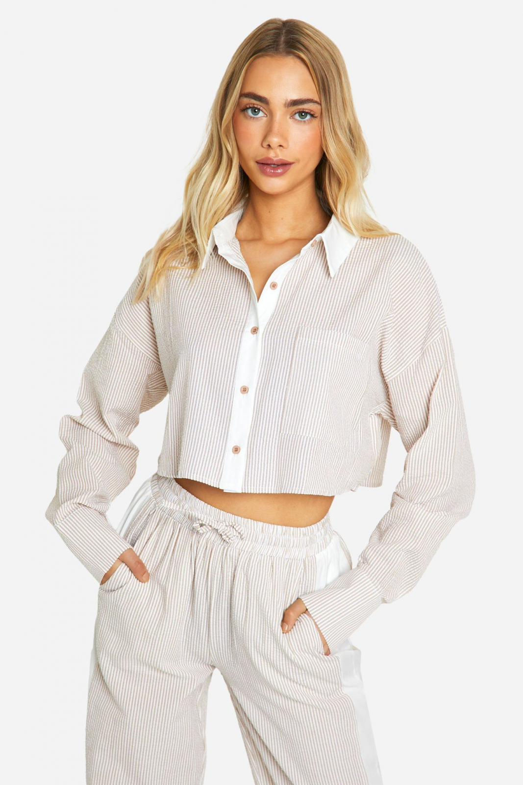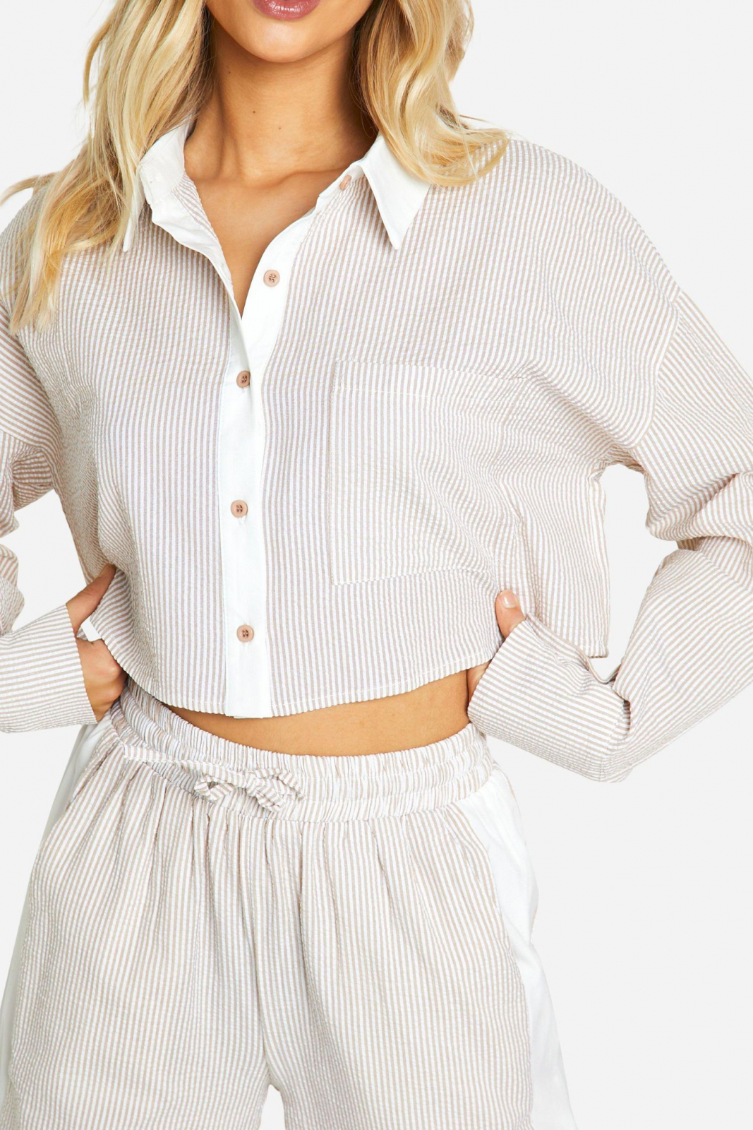 Cămașă scurtă cu dungi șifonate