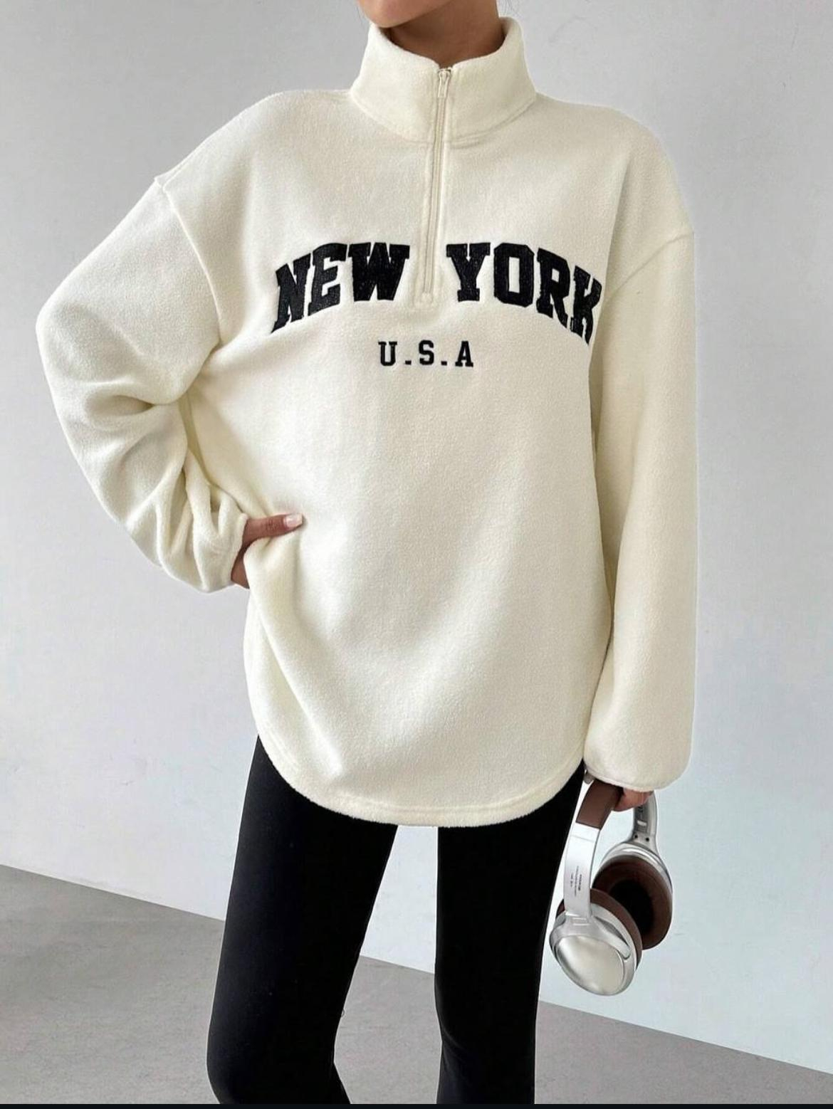 Hanorac pufos cu fermoar la gât
