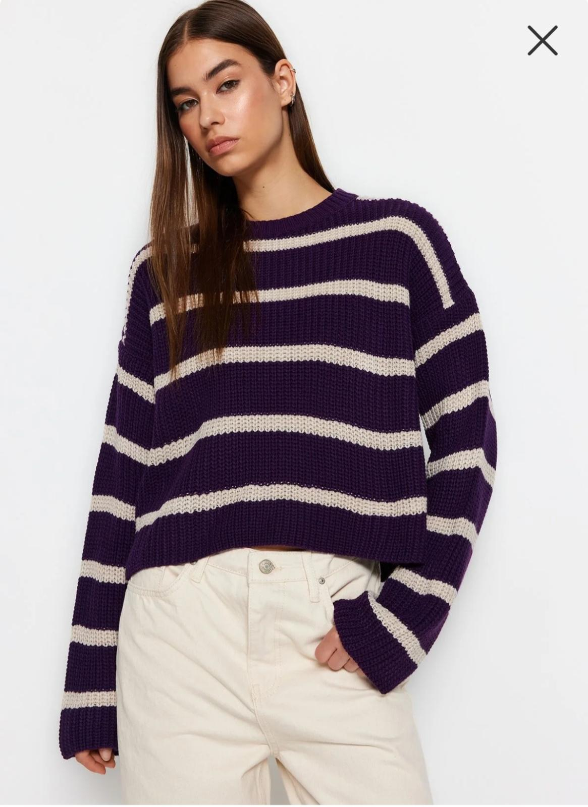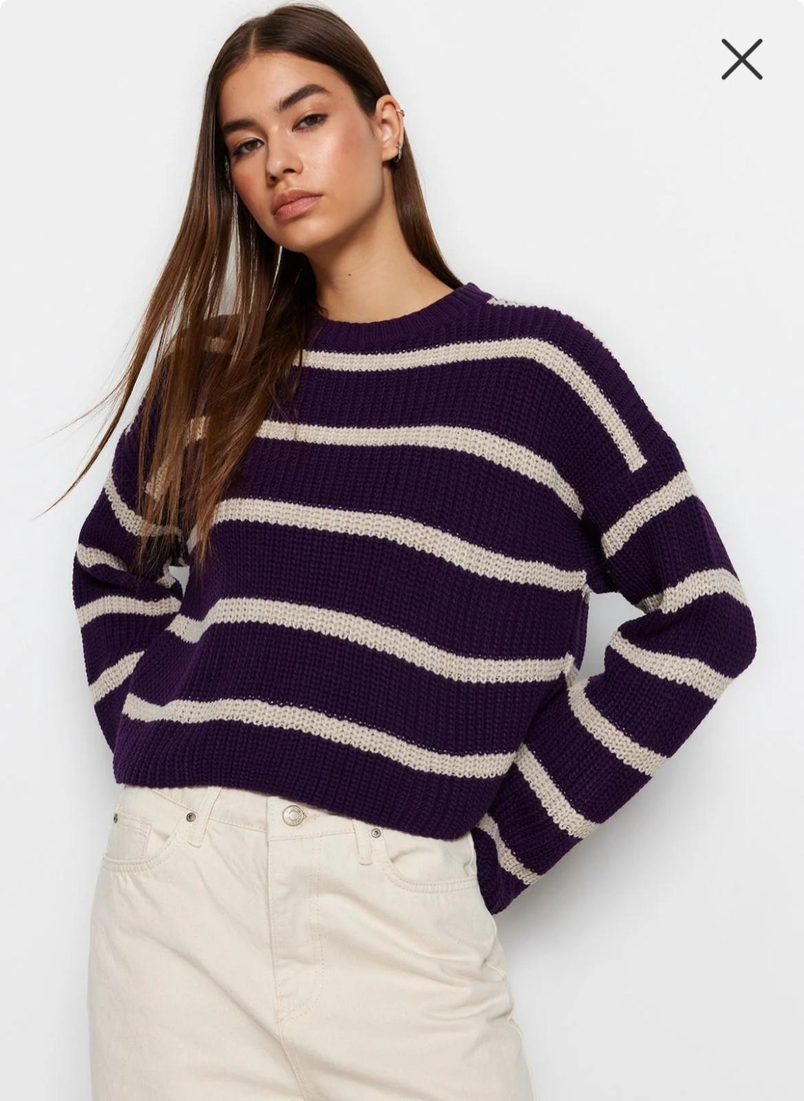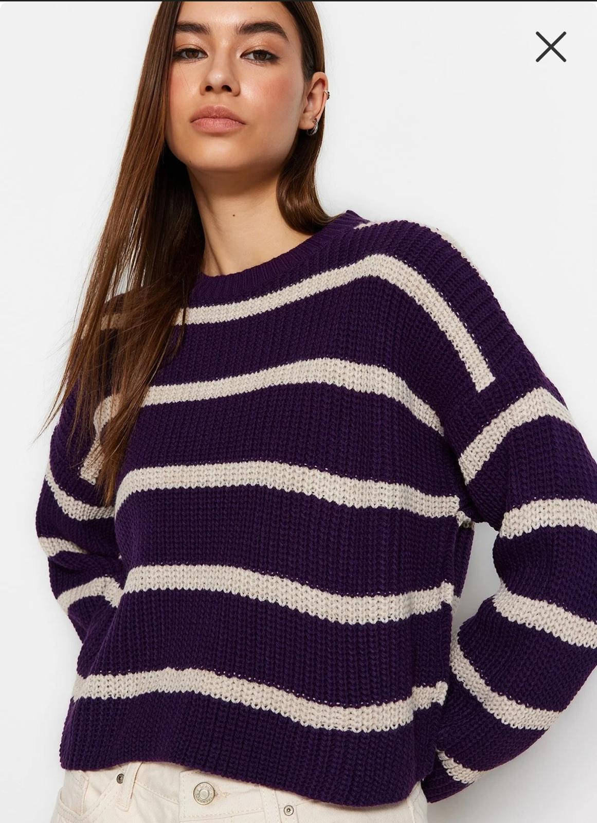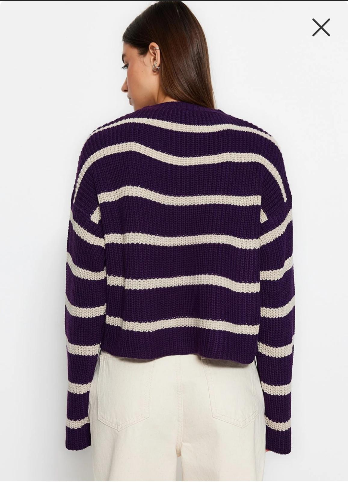 Pulover din tricotaje cu dungi de bază Mov deschis