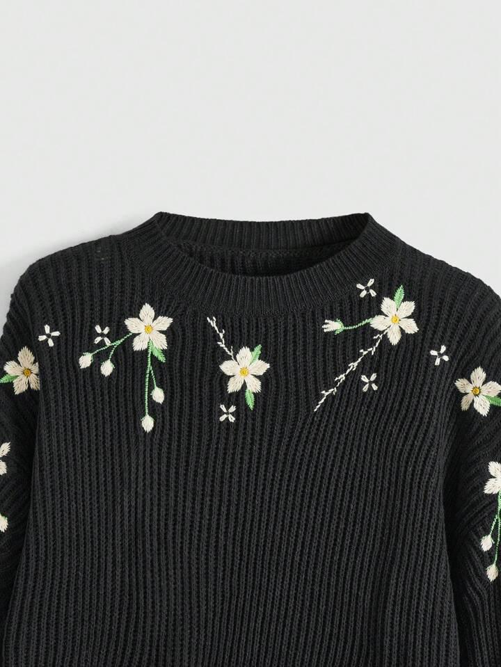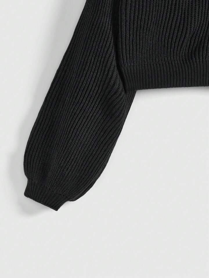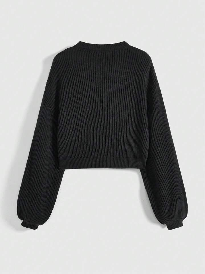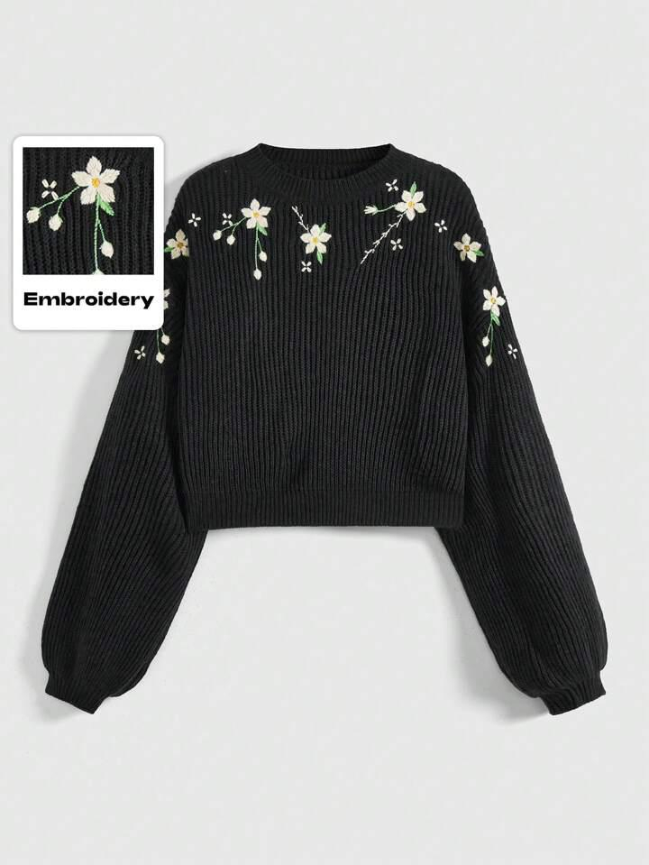 Pulover scurt tricotat Fairycore, casual, cu detalii brodate și mâneci tip felinar