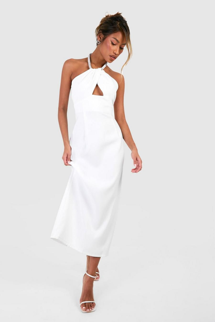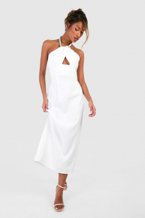 Rochie alba cu un accesoriu placat cu diamnate