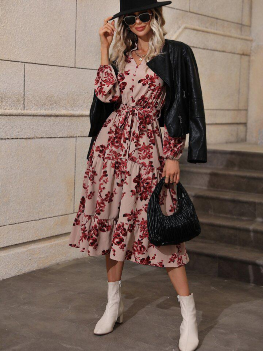 Rochie cu mâneci și imprimeu floral