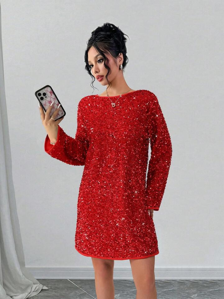 Rochie Elegantă Cu Fundă Cu Paiete, Ocazională, Lejeră