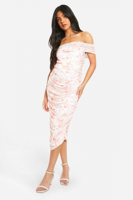 ROCHIE MIDI MATERNITY BARDOT PORCELAN CU IMPRIMURI