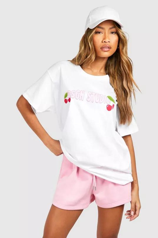 Tricou supradimensionat din bumbac cu imprimeu pe piept Cherry Design Studio